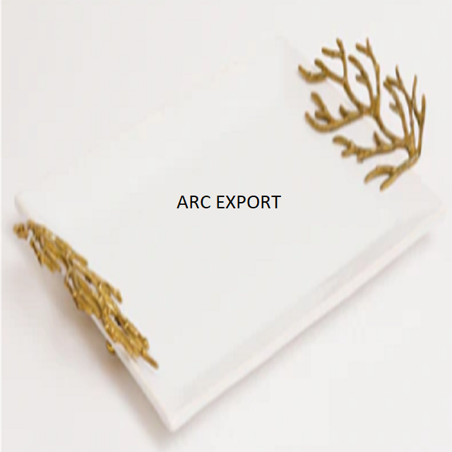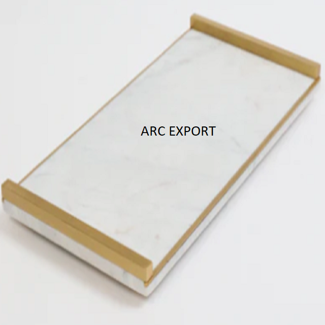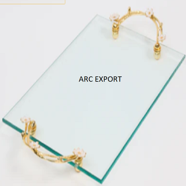 Bandeja de artículos de Hotel de mesa de diseñador moderno, bandeja de servicio de comida de Metal de vidrio con borde dorado único para hoteles de vajilla