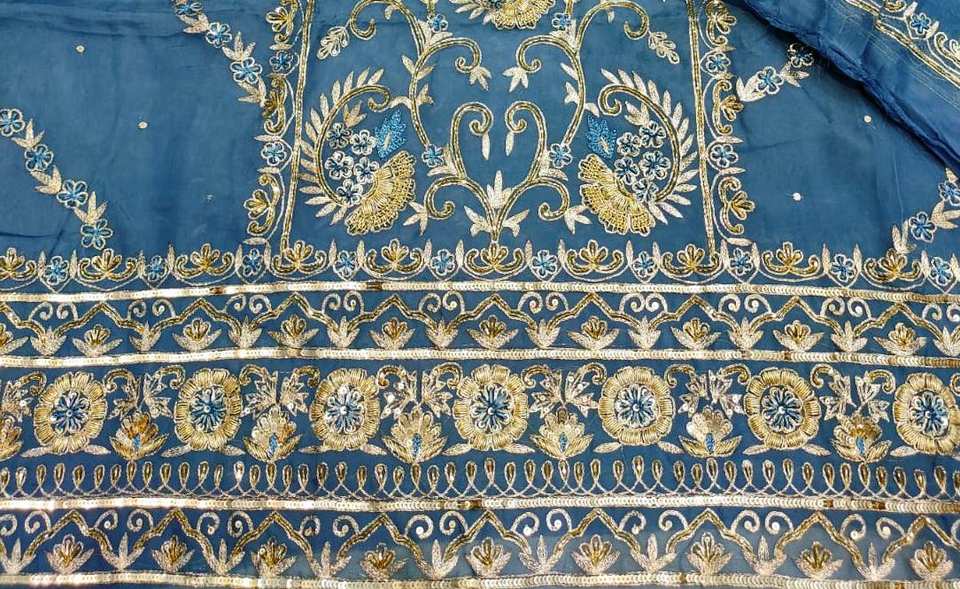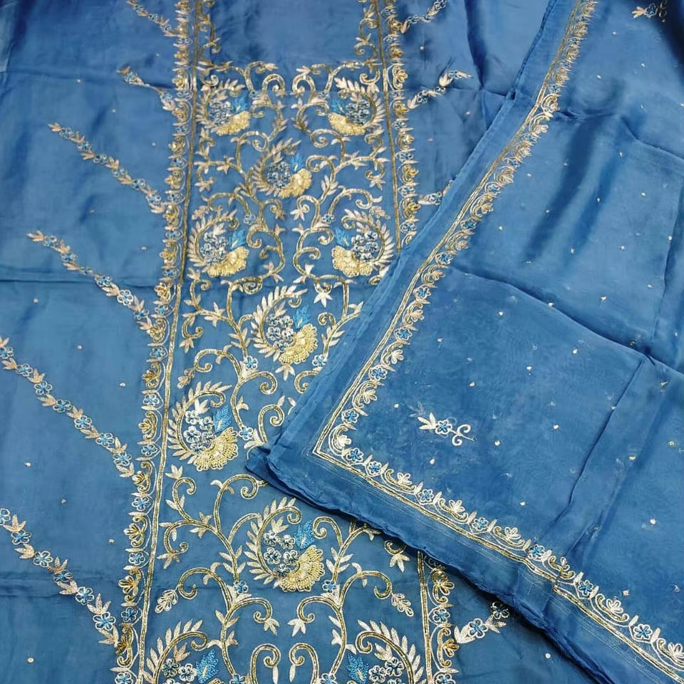 Trajes hermosos bordados a mano sin costuras de diseñador moderno, moda india, estilo tradicional hecho de seda India