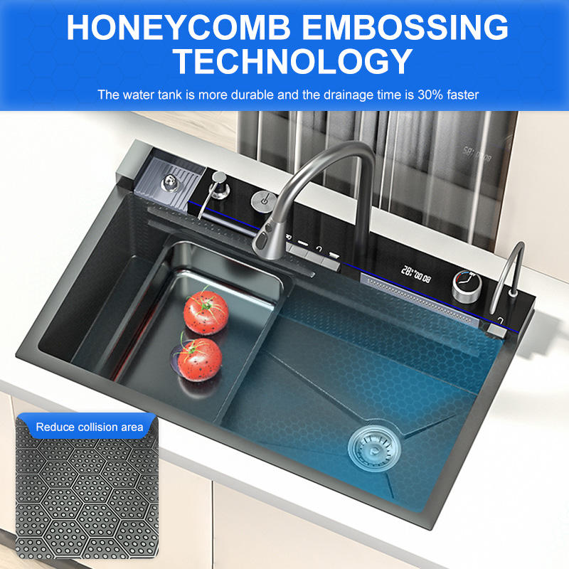 Fregadero de Cocina Moderno con Pantalla Digital Multifuncional, Teclado de Piano, Antiarañazos, Hecho a Mano, LED, Cascada, con Lavavajillas
