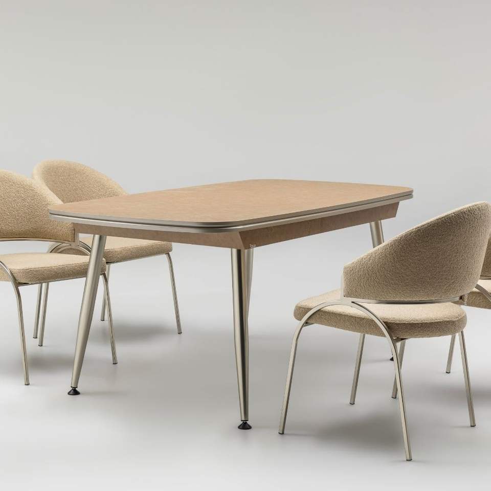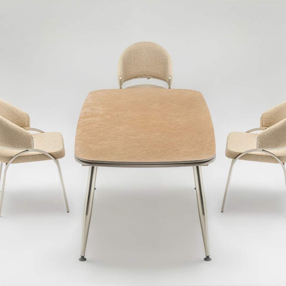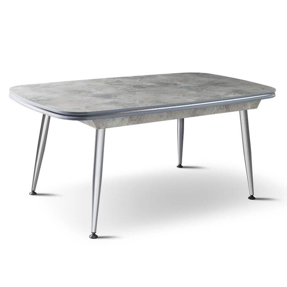 Mesa de Comedor Moderna Rosse con Tapa de Mármol Extensible Rectangular para 6 Personas, Estructura Metálica, Uso en Hoteles, Turquía