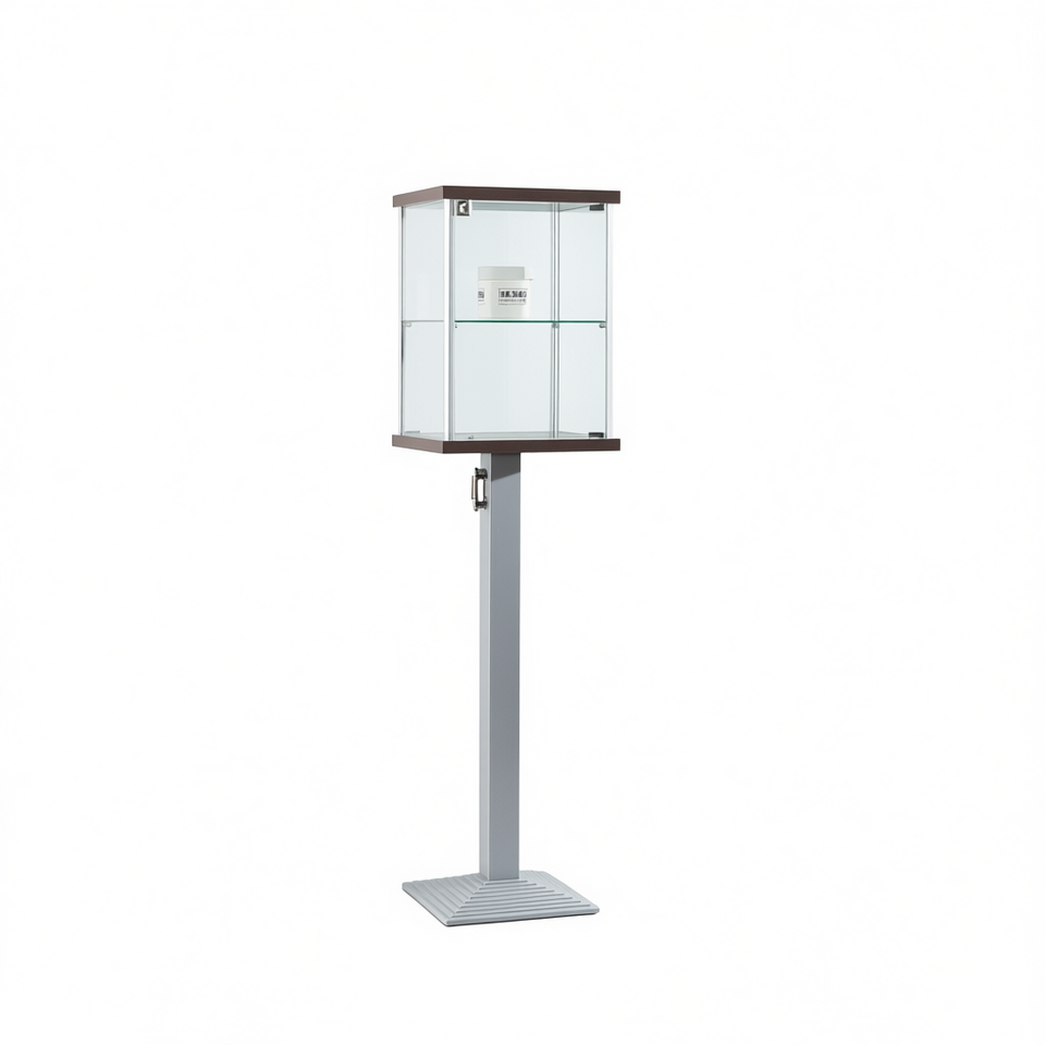 Vitrina Moderna con Vidrio Templado 45x45x153cm, Base Metálica Gris Claro, Estante Ajustable, Puerta con Cerradura