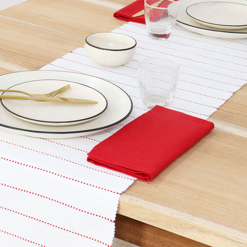 Camino de mesa tejido acanalado de rayas Dobby moderno 14x90 rojo y blanco para decoración de comedor de granja de Navidad