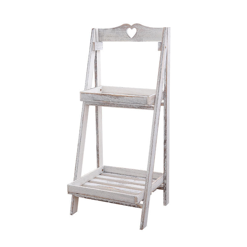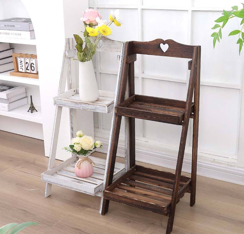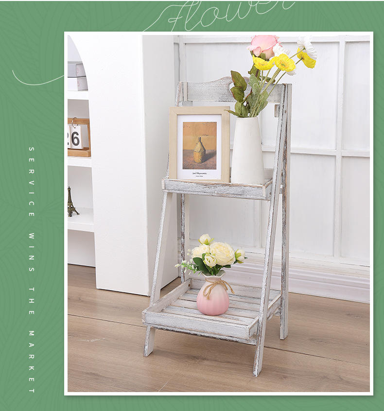 Moderno Soporte de Plantas Plegable de Dos Niveles, de Madera Maciza Blanqueada, Independiente, para Interiores, Estante Decorativo de Exhibición de Madera