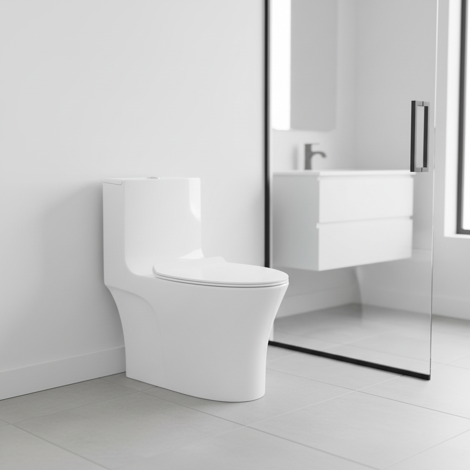 Inodoro de Cerámica Moderno de Una Pieza con Doble Descarga, Ahorro de Agua, Descarga por Sifón, Alargado, Cierre Lento, para Baño