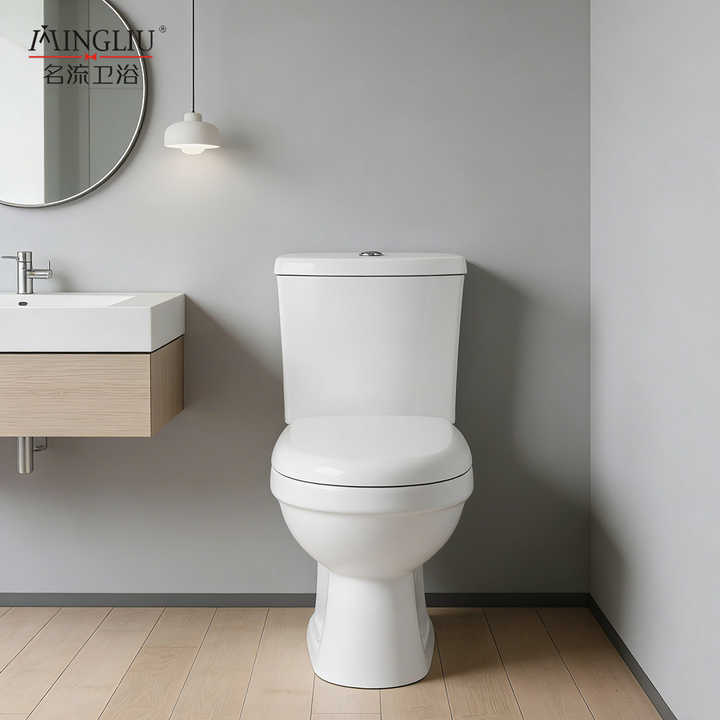 Inodoro de Cerámica Moderno de Dos Piezas con Doble Descarga y Cierre Lento, con Sistema de Descarga por Arrastre para Baños de Hoteles y Villas