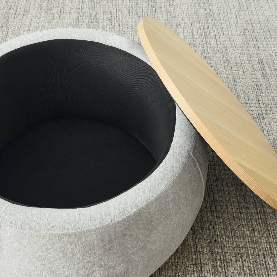 Otomana Redonda Moderna y Duradera con Almacenamiento, Función 2 en 1 como Mesa Auxiliar y Otomana, Mueble para Sala de Estar con Asiento Pequeño