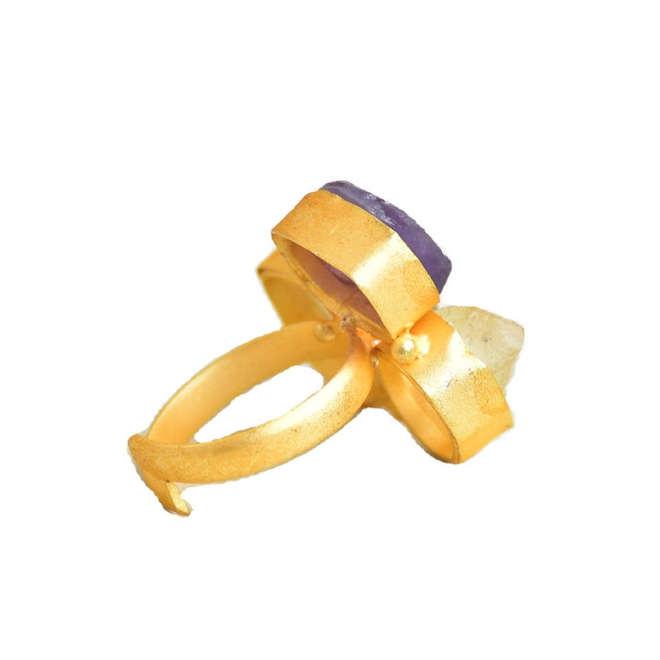 Anillo Moderno Clásico de Latón con Baño de Rodio y Piedras Preciosas Naturales, Joyería Artesanal para Mujer