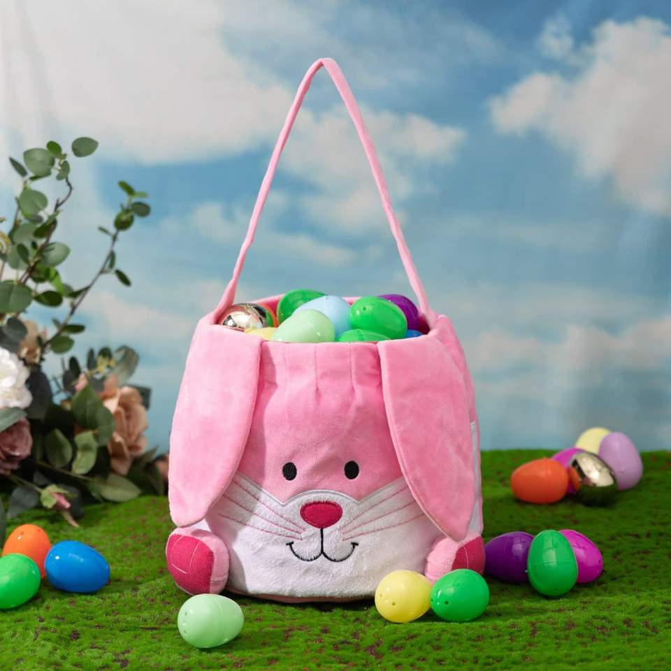 Cesta de Almacenamiento Moderna para Pascua con Decoraciones de Huevos Coloridos y Conejito de Peluche, Bolsa de Resina para Niños (Material de Resina)