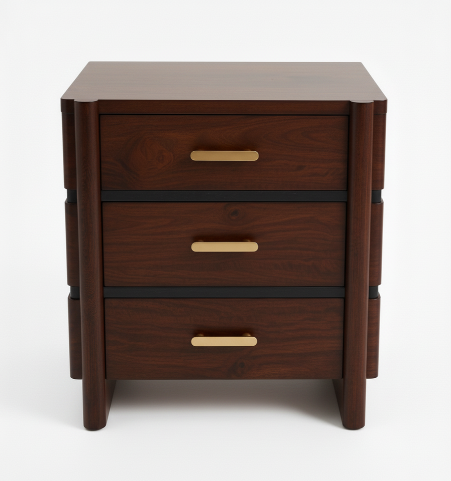 Mesita de Noche Moderna Ecológica de Madera Maciza de Mango con 3 Cajones, Plegable e Inflable, Muebles para Dormitorio