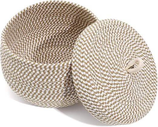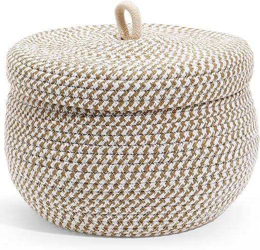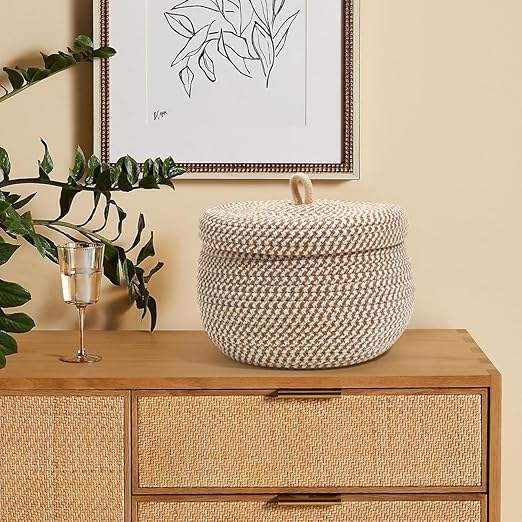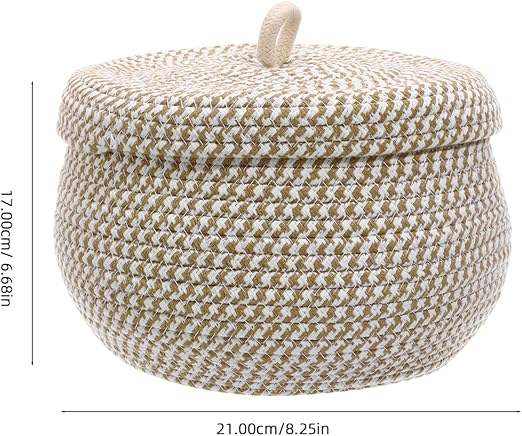 Cesta de Almacenamiento Tejida con Cuerda de Algodón Ecológica Moderna con Tapa, Organizador Multifuncional de Escritorio para Ropa, Juguetes y Lavandería