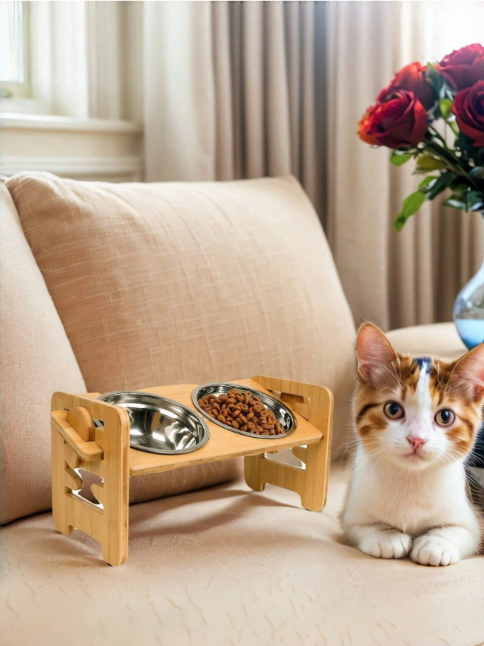 Soporte moderno ecológico para cuenco de perro, soporte elevado de madera de patrón sólido con función de carga, Material de bambú para una alimentación saludable