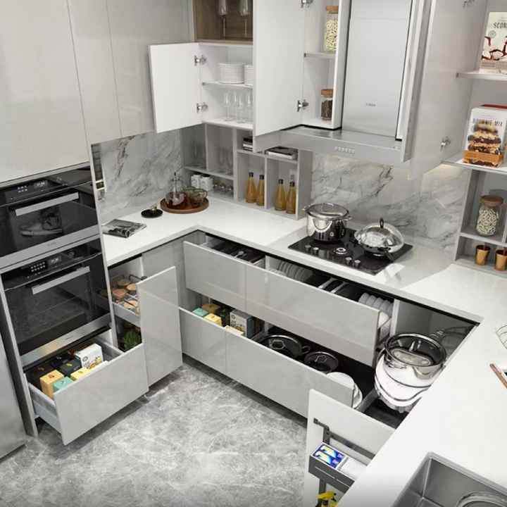 Accesorios:Protector contra salpicaduras, Cajón de cesta, Corredera de extracción, Grifo, Asa y perilla, Bisagra, Almacenamiento en alacenas esquineras, Caja de arroz, Lavabo, Puntapie, Contenedor de desperdicio