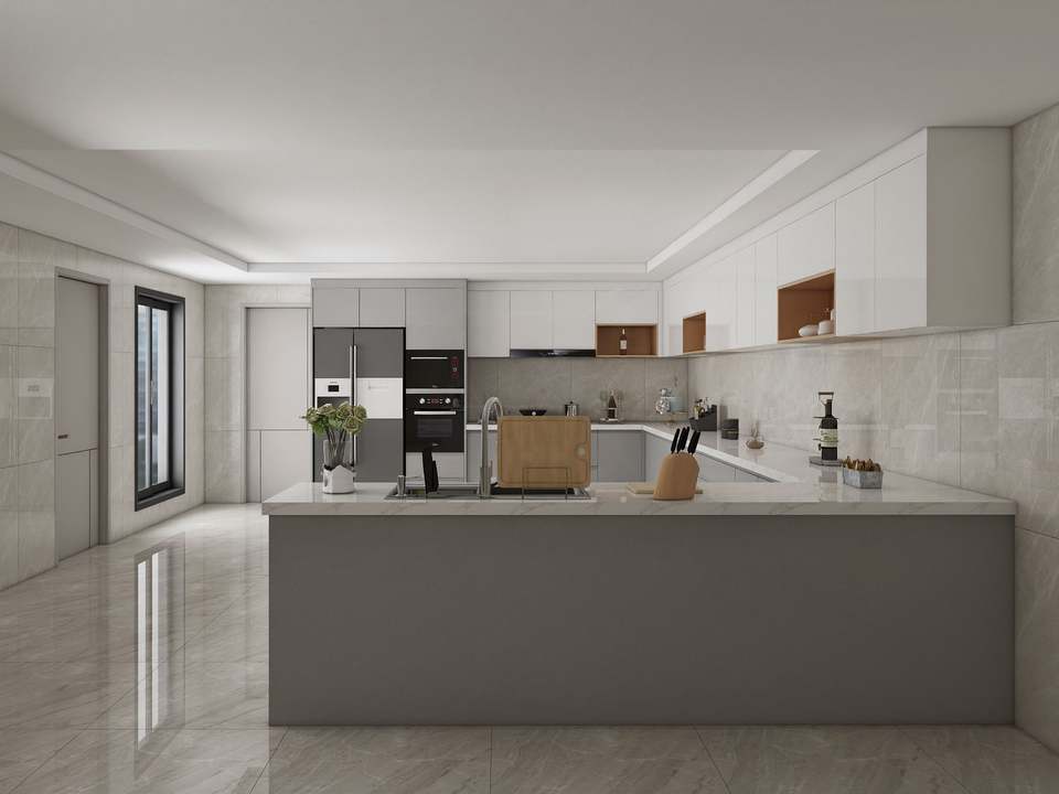 Mueble de Cocina Moderno Ecológico en Forma de U con Acabado en Laca Gris y Encimera de Cuarzo para Apartamento