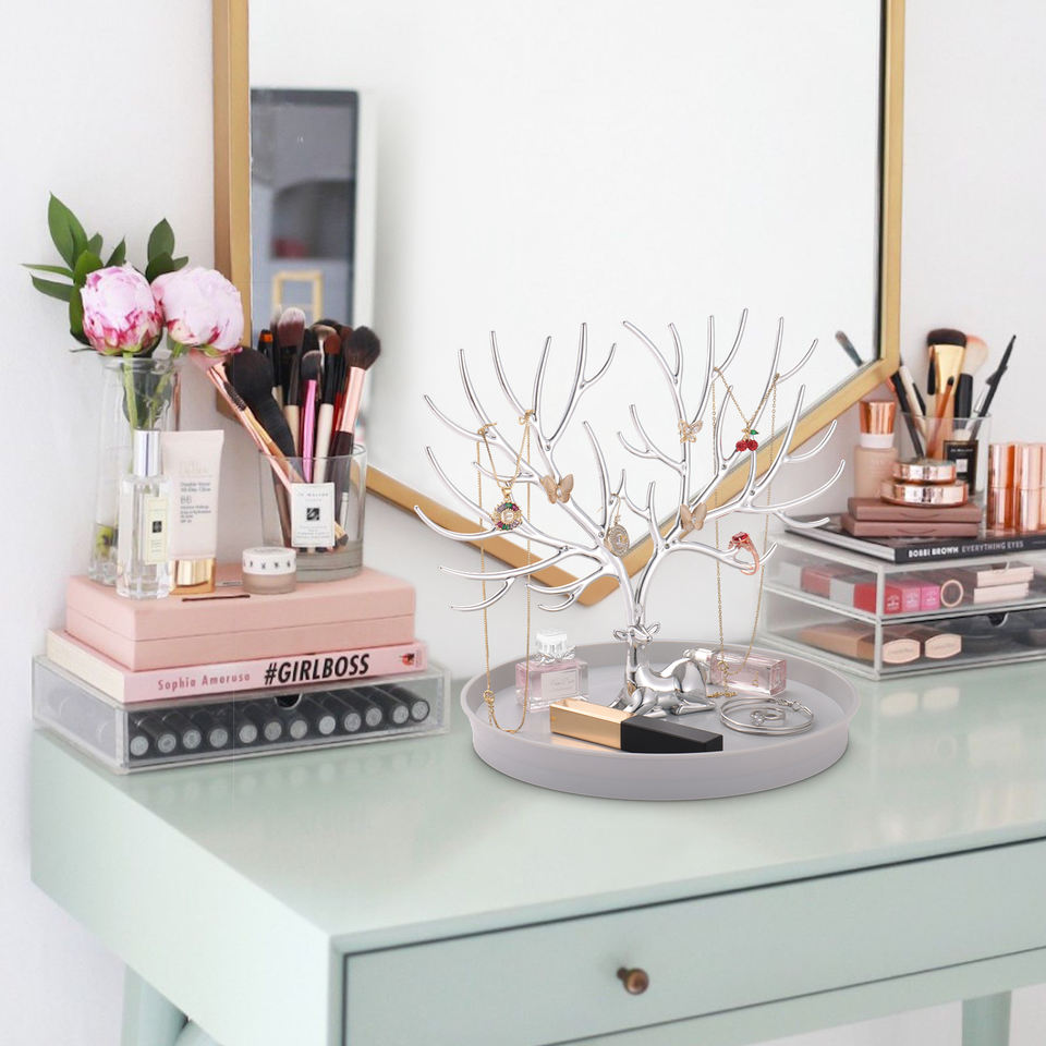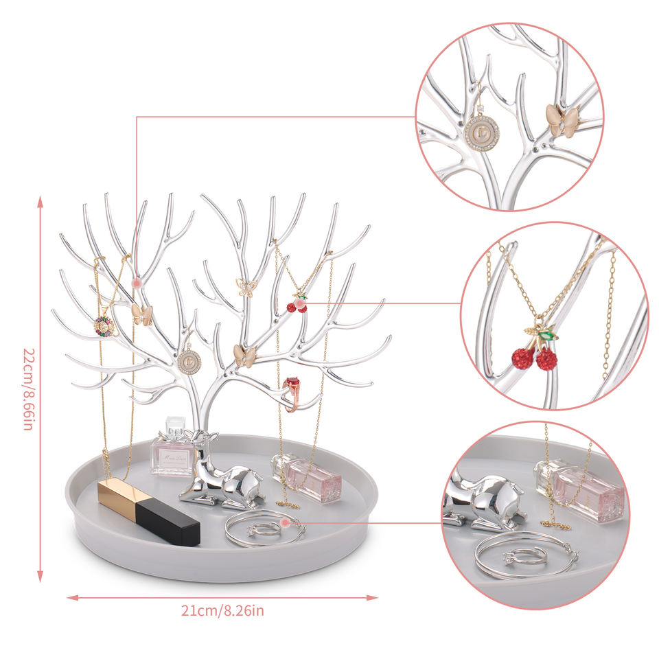 Paleta de exhibición organizadora de soporte de árbol de joyería galvanizada ecológica moderna para pendientes, collares, pulseras, anillos