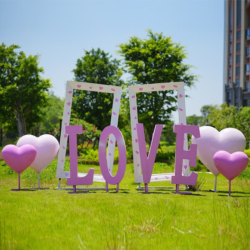 Escultura de Fibra de Vidrio Moderna y Ecológica con Marco de Corazón para Fotos de Celebridades de Internet, para Exteriores, Personalizable