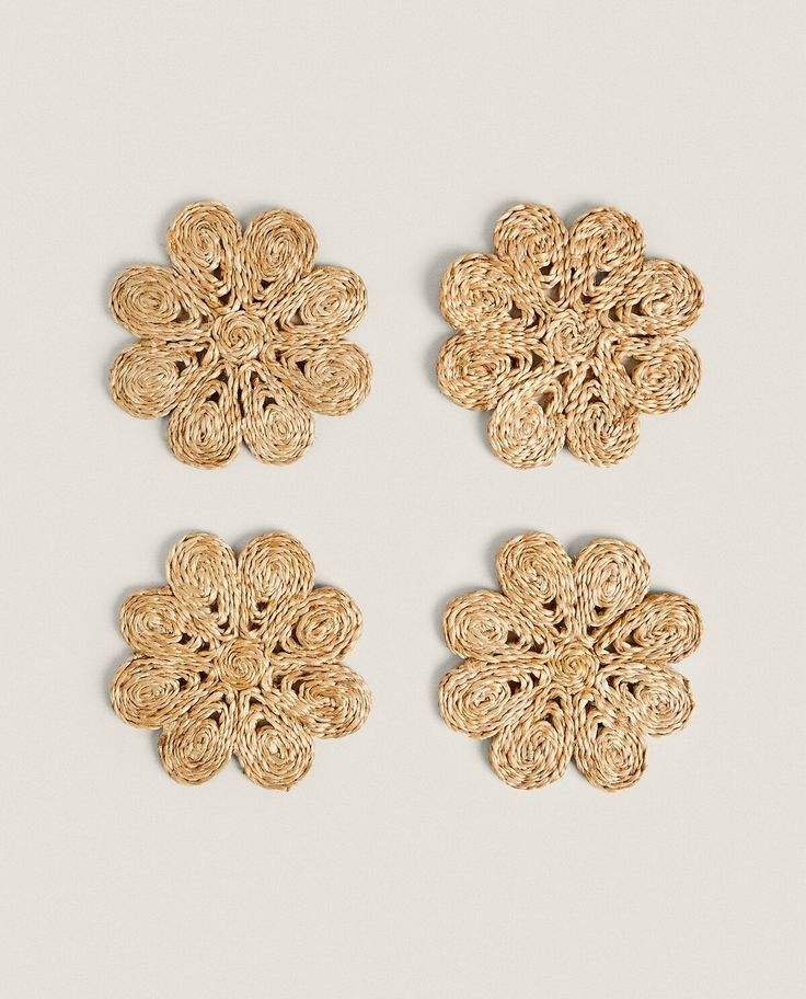 Posavasos de Ratán Tejido a Mano, Diseño Moderno y Elegante con Pétalos en Espiral, para Mesa de Comedor, Bebidas y Decoración del Hogar