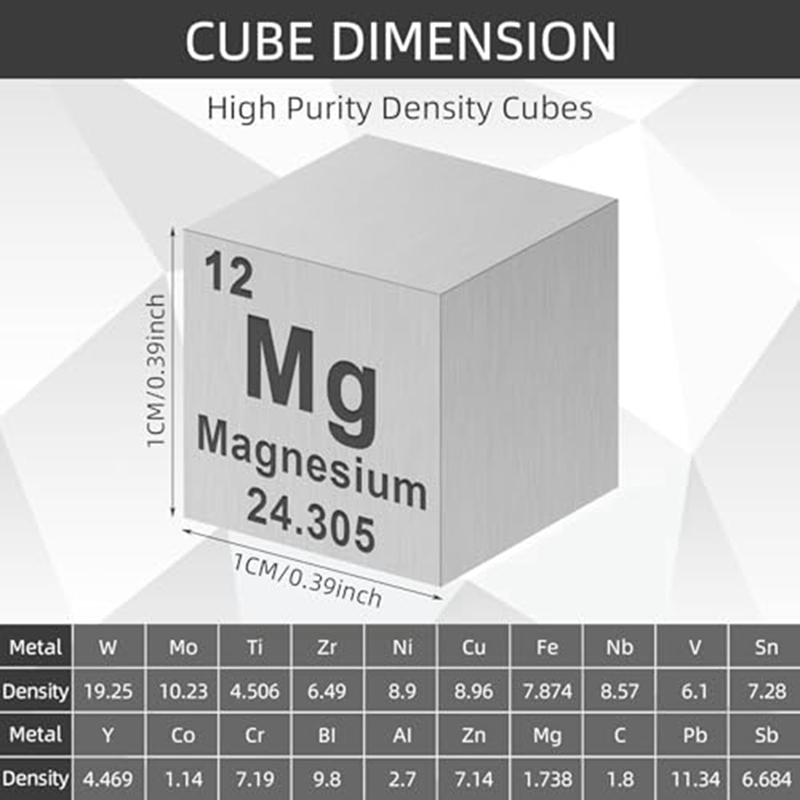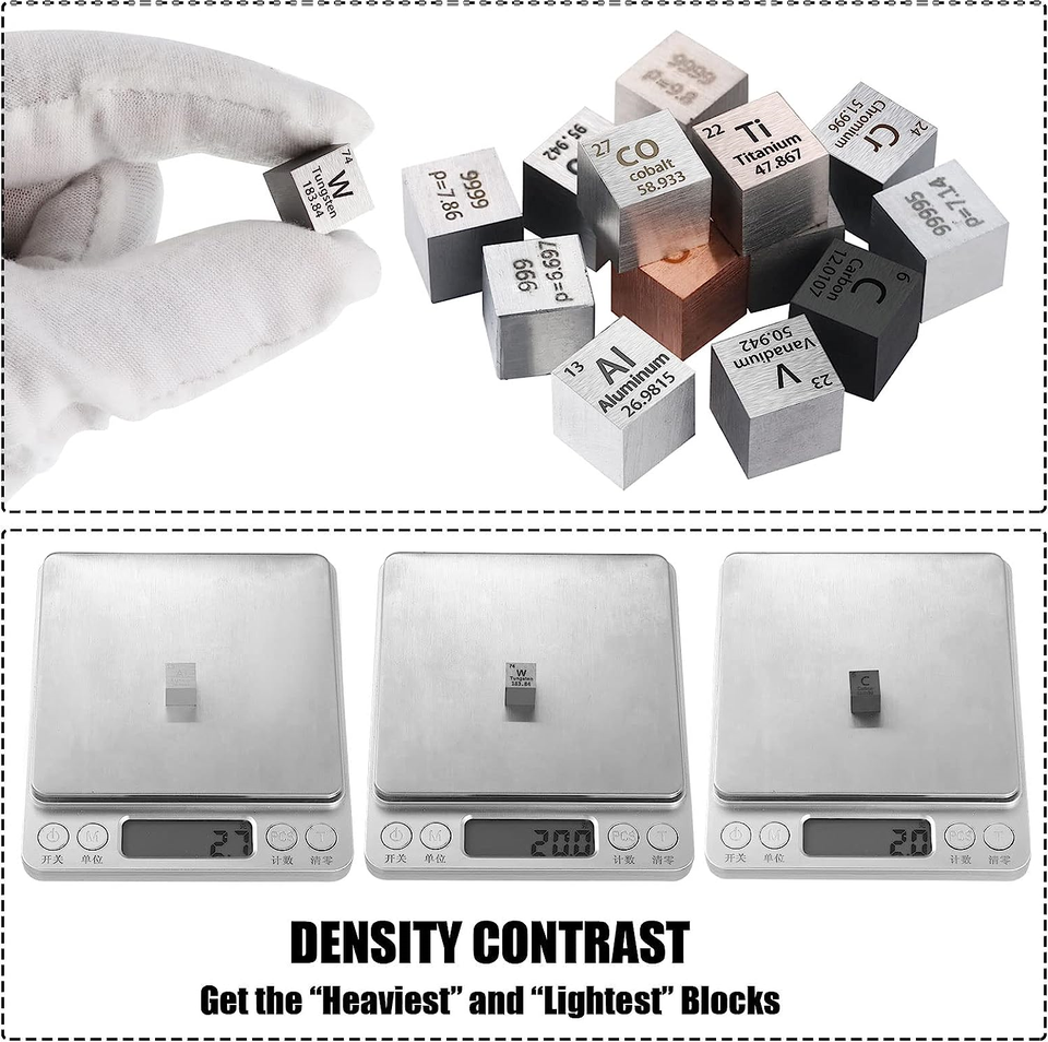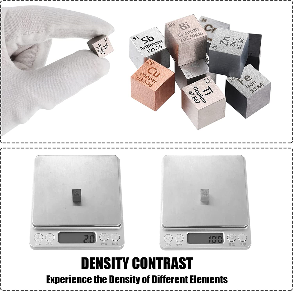 Juego de Cubos de Metales de Diferentes Densidades de 10 mm, Juego de Cubos de Metal con una Pureza de hasta el 99,99% para Estudiantes, Profesores, Amantes de la Ciencia, Colección y Manualidades