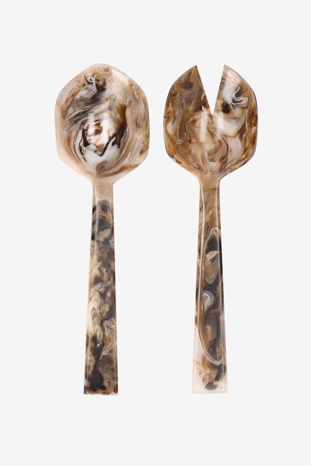 Juego de Cubiertos para Servir Ensaladas de Resina Epoxi Moderna, Atractivo Servidor de Ensaladas, Cuchara Grande de la India