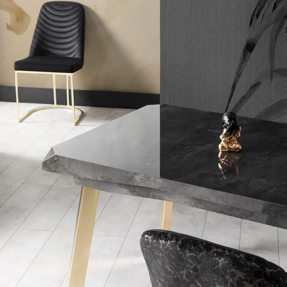 Mesa de Comedor Europea Moderna Rosse con Tapa de Mármol, Patas de Metal, Extensible, Diseño Rectangular para 6 Personas, Turquía