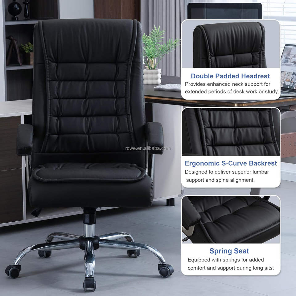 Silla de Oficina Ejecutiva Moderna Giratoria de Cuero Sintético, Silla Ejecutiva Cómoda Reclinable con Respaldo Alto para Oficina en Casa, Poltrona