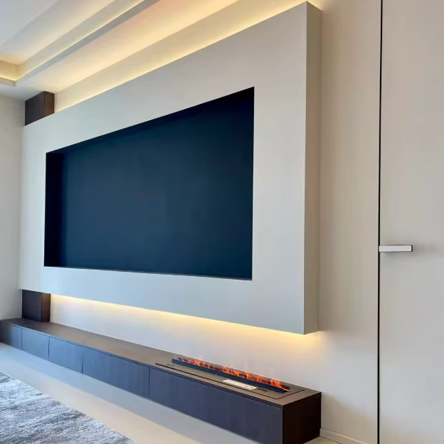 Mueble de TV extensible moderno, muebles de sala de estar, soportes de TV de alto brillo con soporte de TV de vidrio templado, gabinete con chimenea