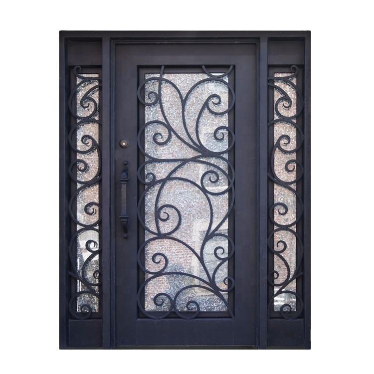 Puerta de Hierro Forjado Doble Frontal Exterior Moderna Entrada Principal Puerta de Hierro Catálogo de Diseño Puertas de Acero Baratas Rotura Térmica