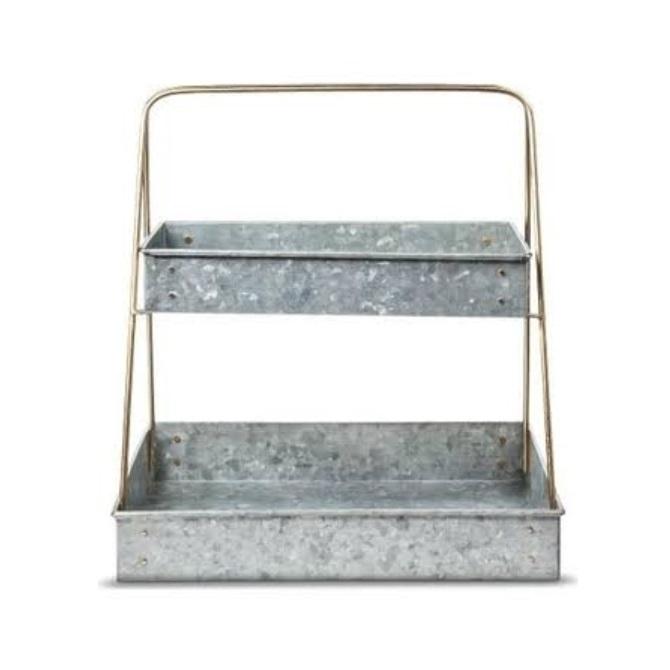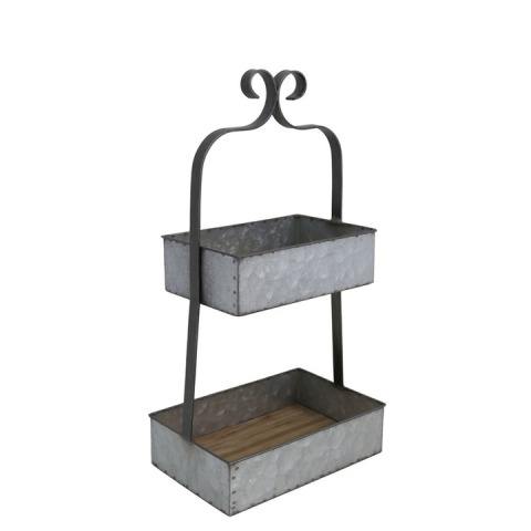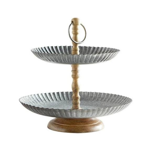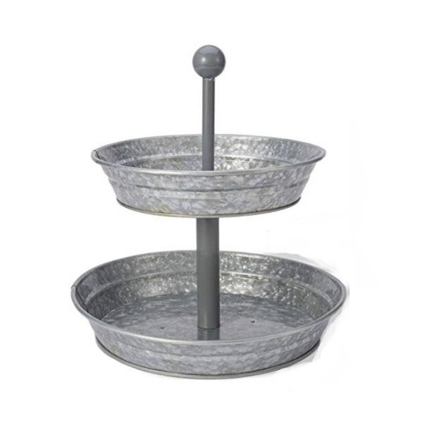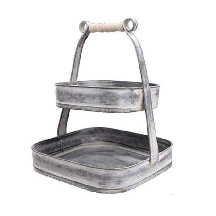 Bandeja Rectangular de 2 niveles para servir comida, bandeja de Metal galvanizado plateado, para decoración del hogar