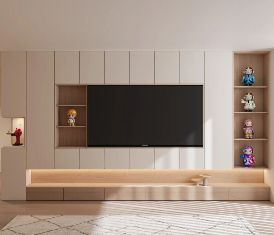 Soporte de TV de madera minimalista de lujo con puerta plegable y estante para sala de estar, dormitorio o muebles de gabinete de TV para el hogar