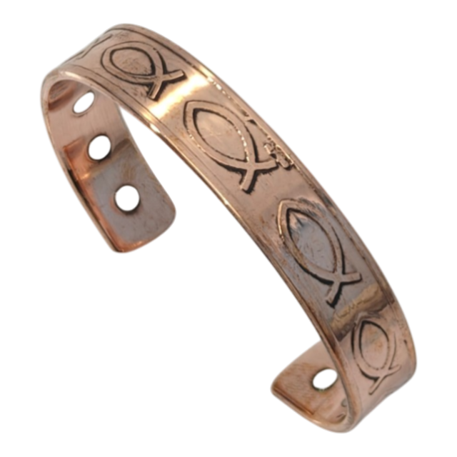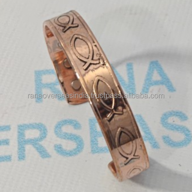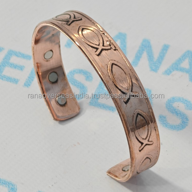 Brazalete Magnético de Cobre Sólido con Diseño de Peces Moderno, 6 Imanes, Ecológico, Terapia del Dolor, Brazalete Energético Unisex, Tamaños Personalizados