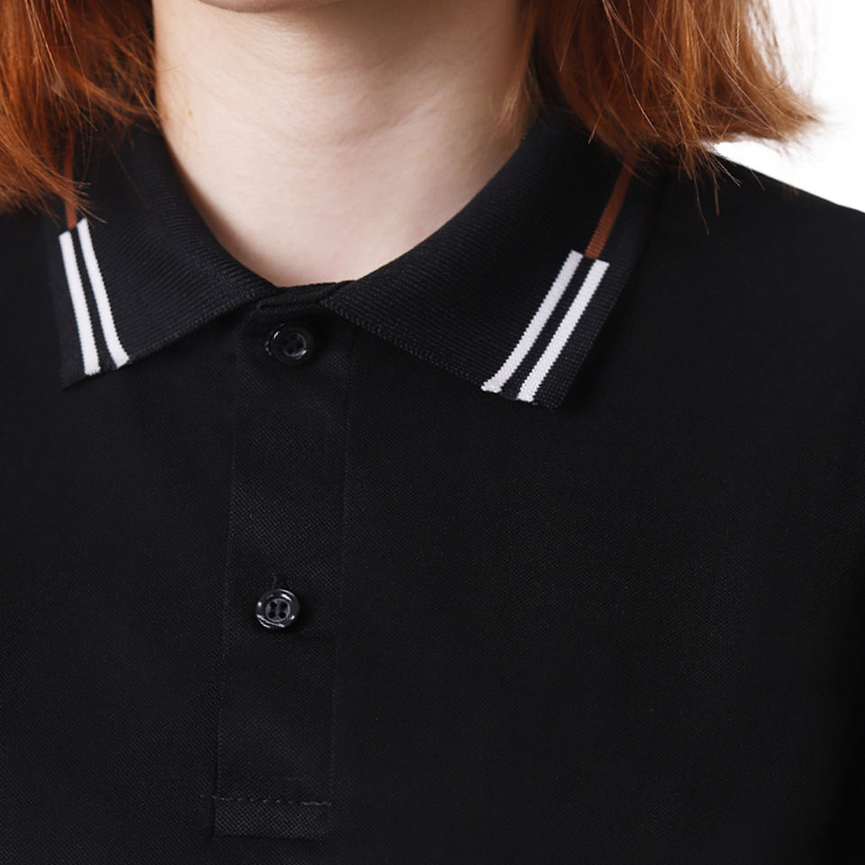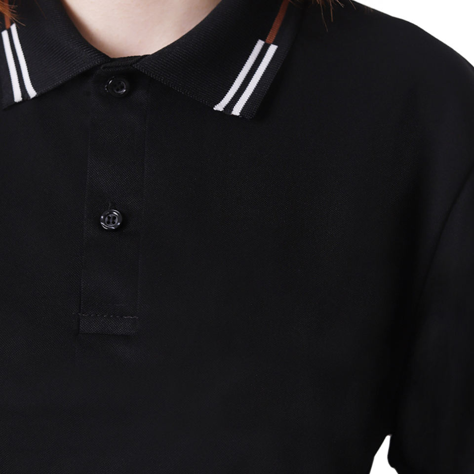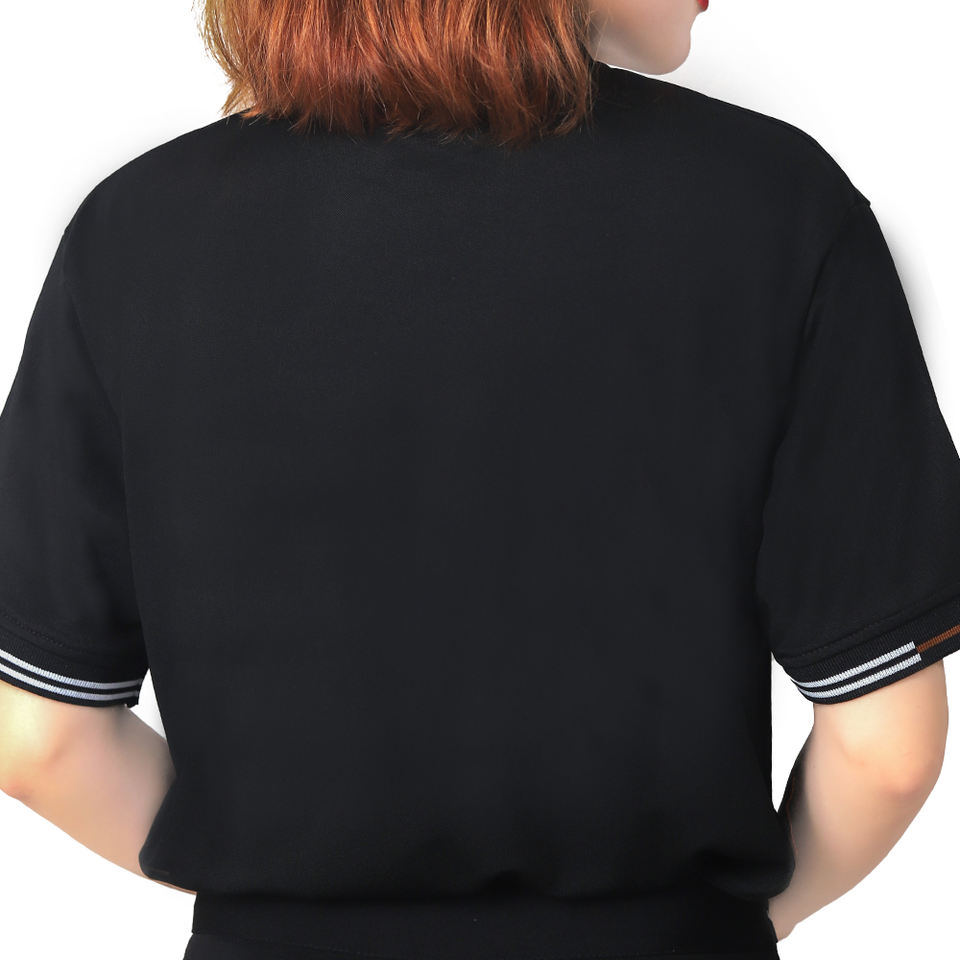 Polo Negro de Corte Moderno con Elegante Detalle Blanco en el Cuello y las Mangas, Tejido de Algodón de Alta Calidad para Uso Diario o Laboral