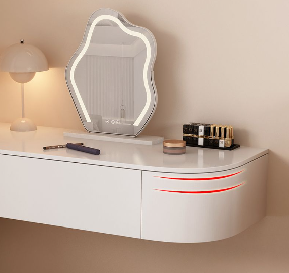 Tocador Flotante Moderno con Espejo Iluminado Ajustable, Tocador de Pared para Dormitorio