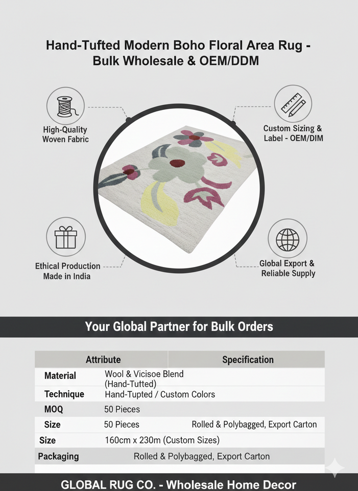 Alfombra Moderna de Lana con Diseño Floral, Pelo Alto y Extra Grueso para Sala de Estar, Dormitorio, Decoración de Interiores del Hogar