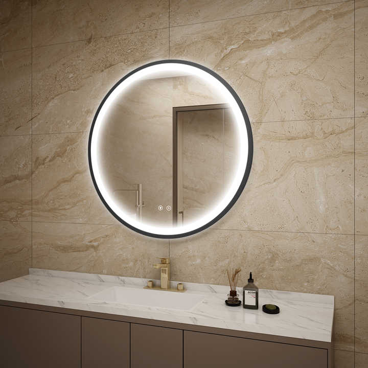 Espejo Redondo Moderno con Marco e Iluminación LED con Temperatura de Color de 3000K-6000K, Garantía de 3 Años para Hoteles, Apartamentos, Villas, Diseño Gráfico