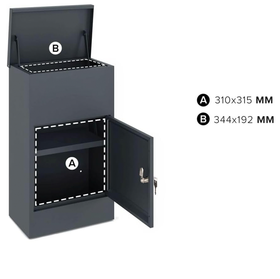 Caja de paquetería independiente moderna para exteriores, caja de entrega bloqueable y resistente a la intemperie hecha de metal robusto para uso comercial en el hogar