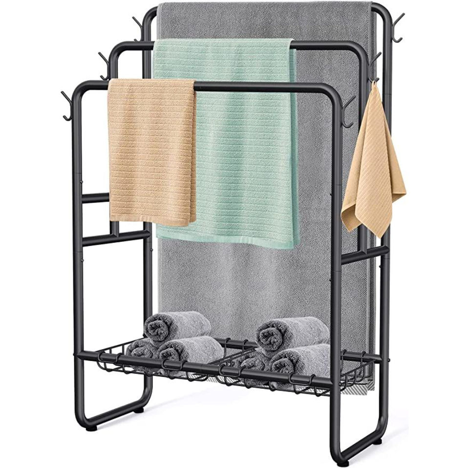 Moderno Toallero de Pie Metálico de 3 Niveles Curvo para Baño, Almacenamiento y Exhibición, Precio Razonable