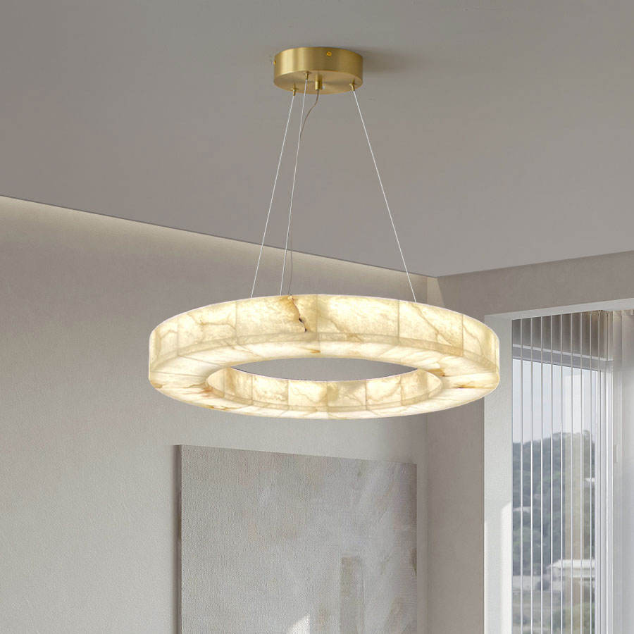 Luz de iluminación de alabastro francés moderno Villa Hotel anillo lámpara círculo mármol araña luces colgantes