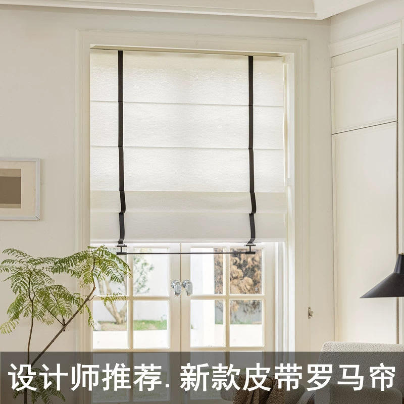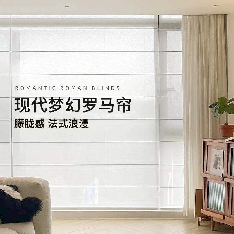 Modern French Roman Blinds Light Filtering Electric Ceiling Installation Wide Blade Anti Uv For Living Room Office
