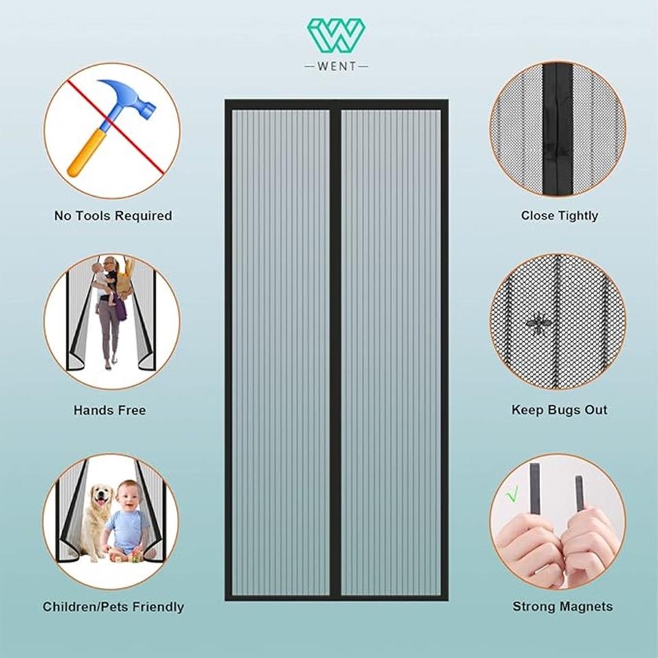 Mosquitera Magnética Moderna para Puerta, de Poliéster, con Marco Completo, Resistente a Insectos, con Orificios de Ventilación Pequeños