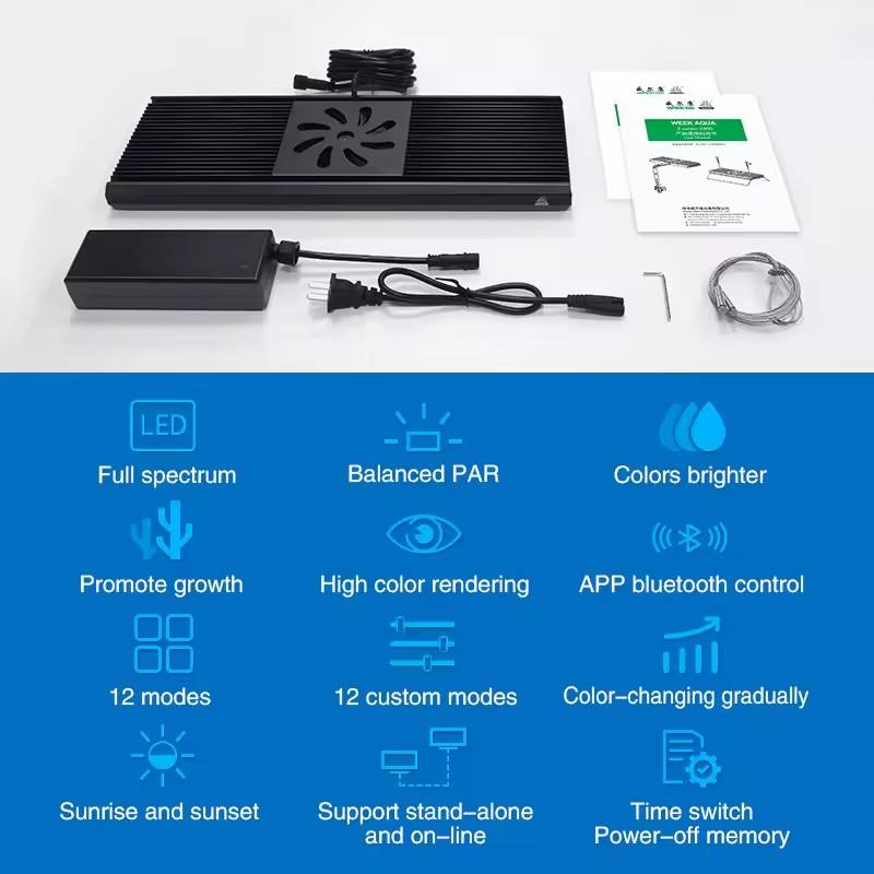 Luz LED de acuario de arrecife de coral de espectro completo moderna, iluminación eléctrica de lujo para peceras con plástico y metal empaquetado en cajas
