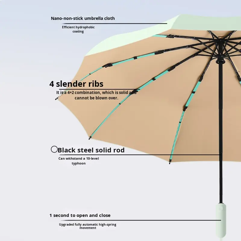 Sombrilla moderna completamente automática, colorida, antirrebote, lluvia, brillo, protector solar, seguridad, impresión personalizada disponible para