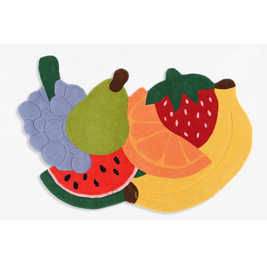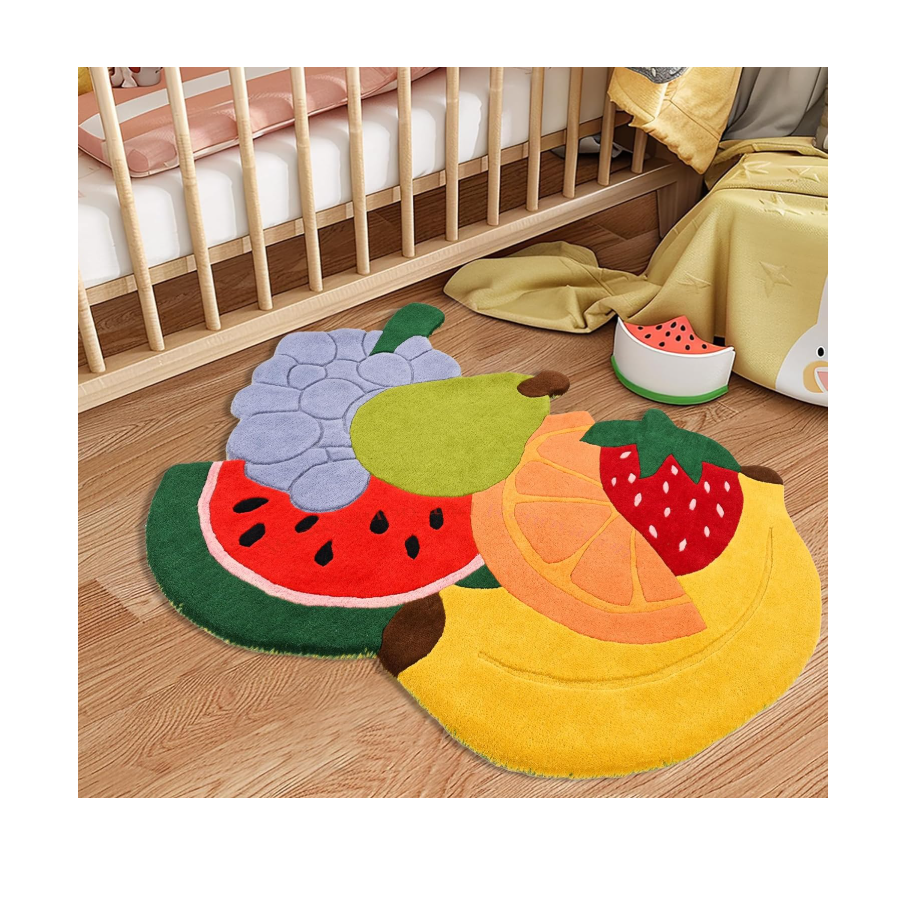 Alfombra Moderna de Lana con Forma de Sandía, Tapete de Juego Irregular con Mechones, Tamaño Personalizado, Antideslizante, Lavable, para el Hogar