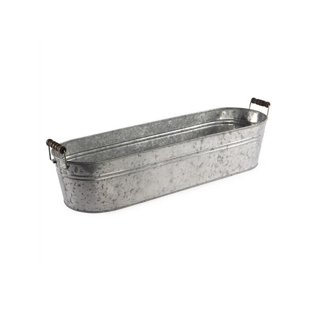 Cubo de Metal Galvanizado Moderno con Asa de Madera, Maceta de Metal para Hierbas y Flores, para Limpieza del Hogar y Uso en Jardinería