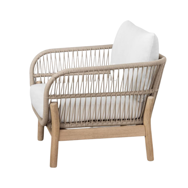 Sillón de Jardín Moderno de Ratán y Madera de Teca con Cojín Impermeable Extraíble, Muebles para Interiores y Exteriores
