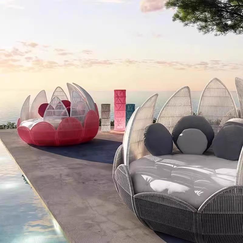 Moderno jardín tejido cuerda sofá Patio seccional Metal flor forma ocio silla sala de estar interior patio balcón terraza