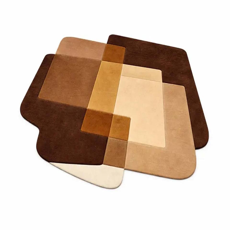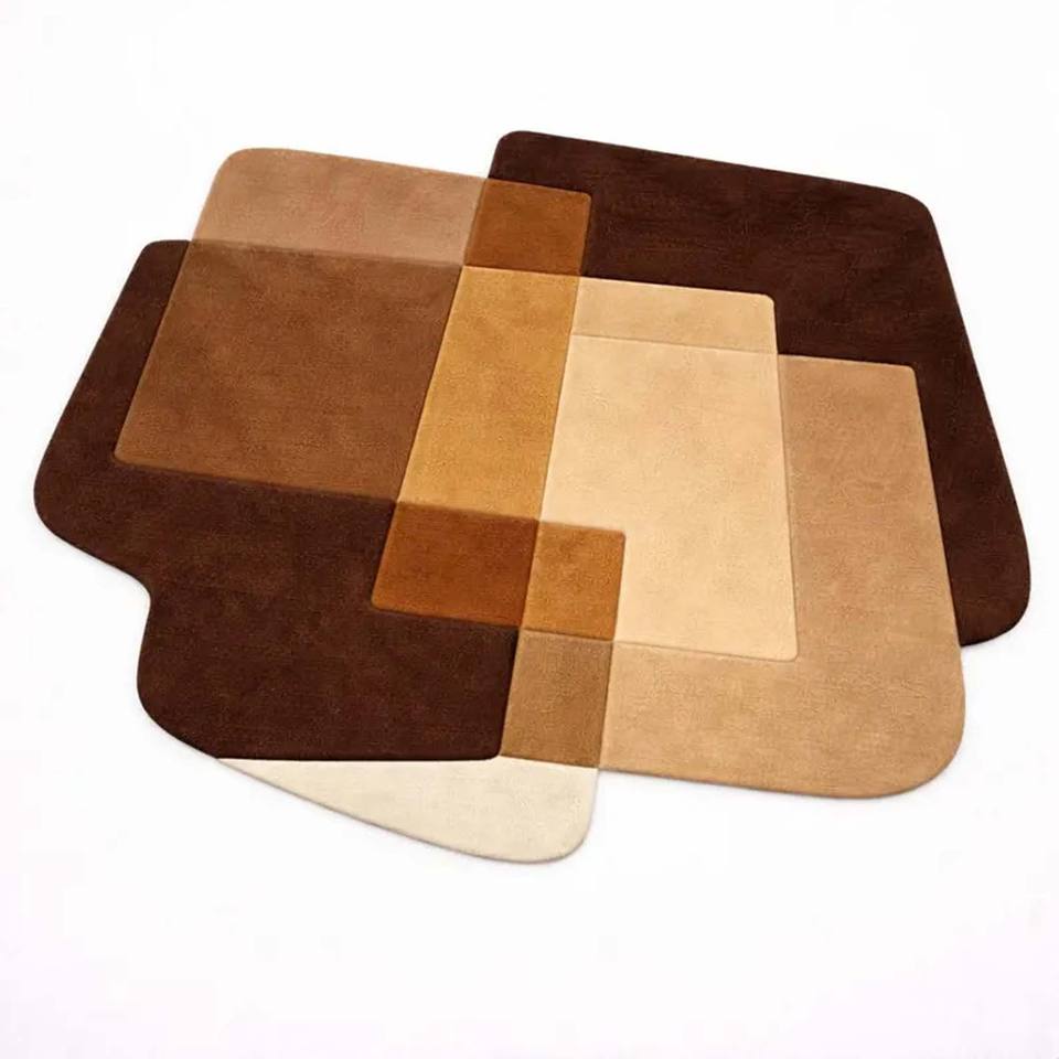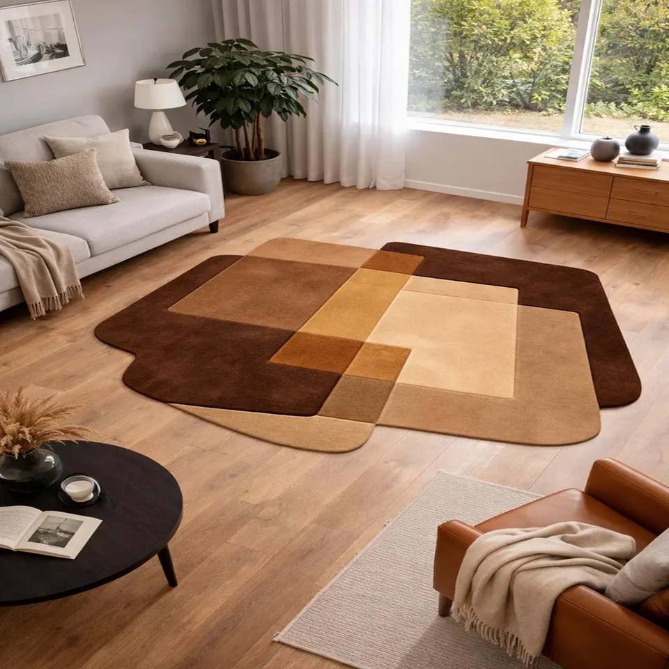 Alfombra Moderna de Diseño Geométrico, Color Marrón Beige, Abstracta, de Lana Suave, de Lujo, Hecha a Mano, para Sala de Estar, Dormitorio, Decoración del Hogar