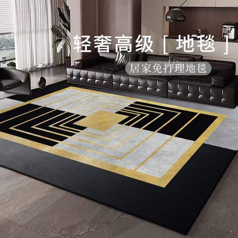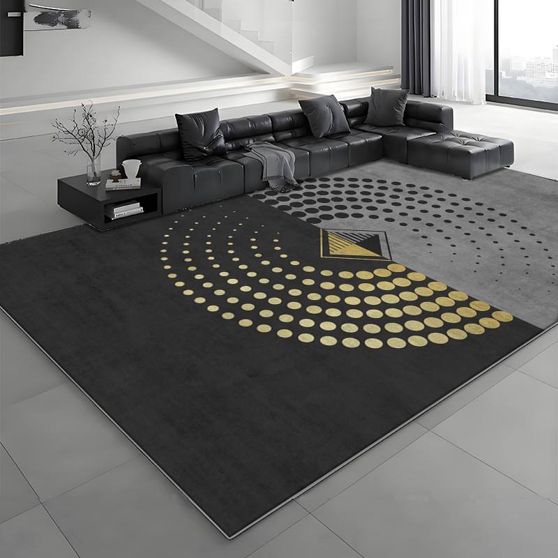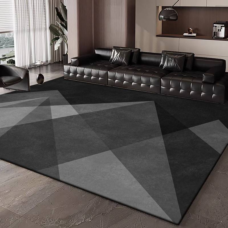 Alfombra Moderna de Diseño Geométrico Rectangular Antideslizante en Negro y Gris para Sala de Estar o Dormitorio, Cobertura Total, Estilo 2025, Diseño de Alta Gama