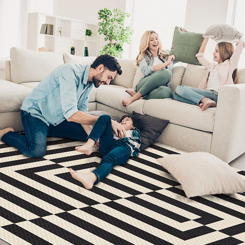 Alfombra Moderna de Diseño Geométrico Rectangular, de Fibra de Poliéster Resistente a las Manchas, para Sala de Estar, Dormitorio, Decoración del Hogar