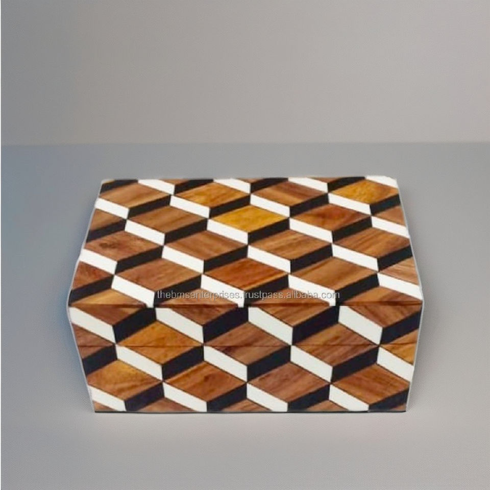 Cajas de joyería con incrustaciones de hueso Beige geométricas modernas para almacenamiento en el hogar y la Oficina elegantes y elegantes
