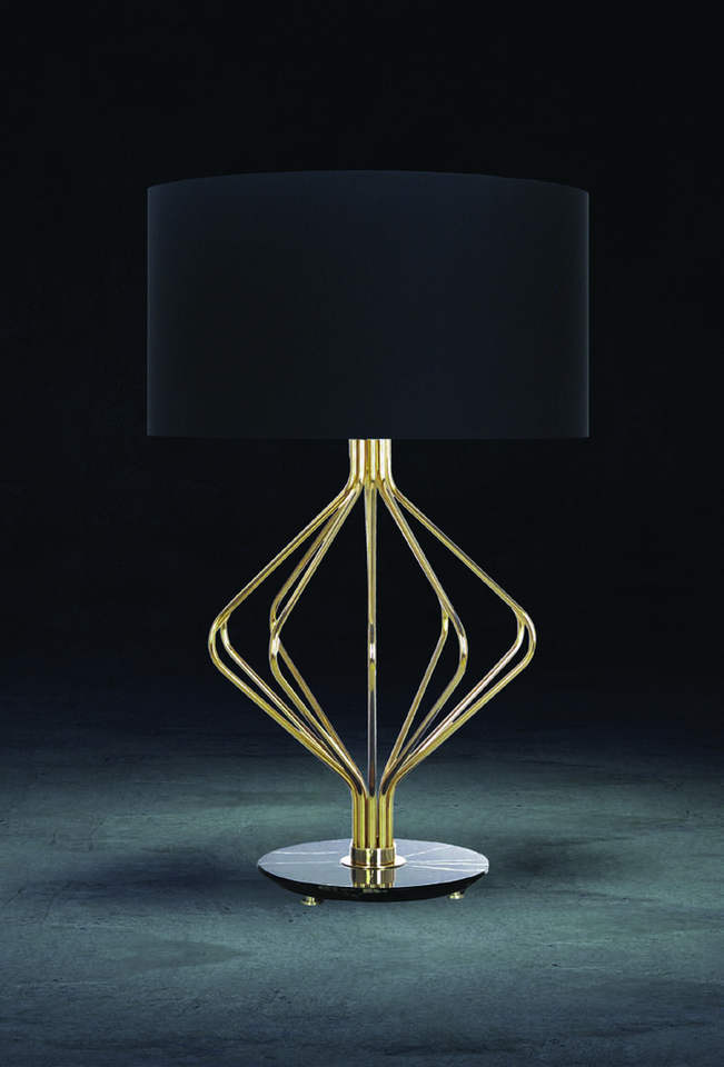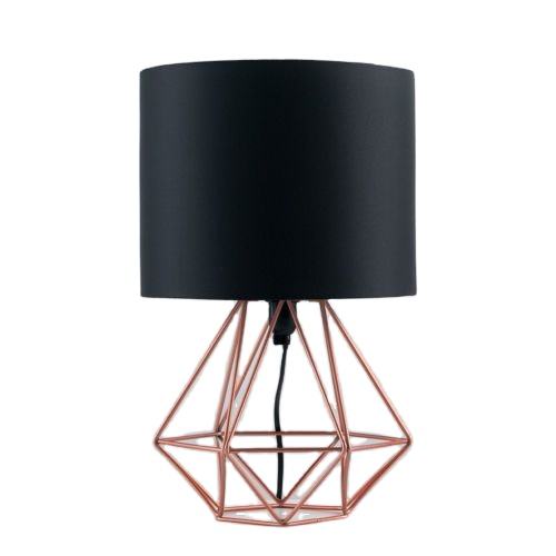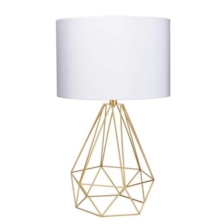 Lámpara de Mesa Moderna de Metal Geométrico con Pantalla de Tela, Lámpara Decorativa de Noche para Dormitorio o Sala de Estar