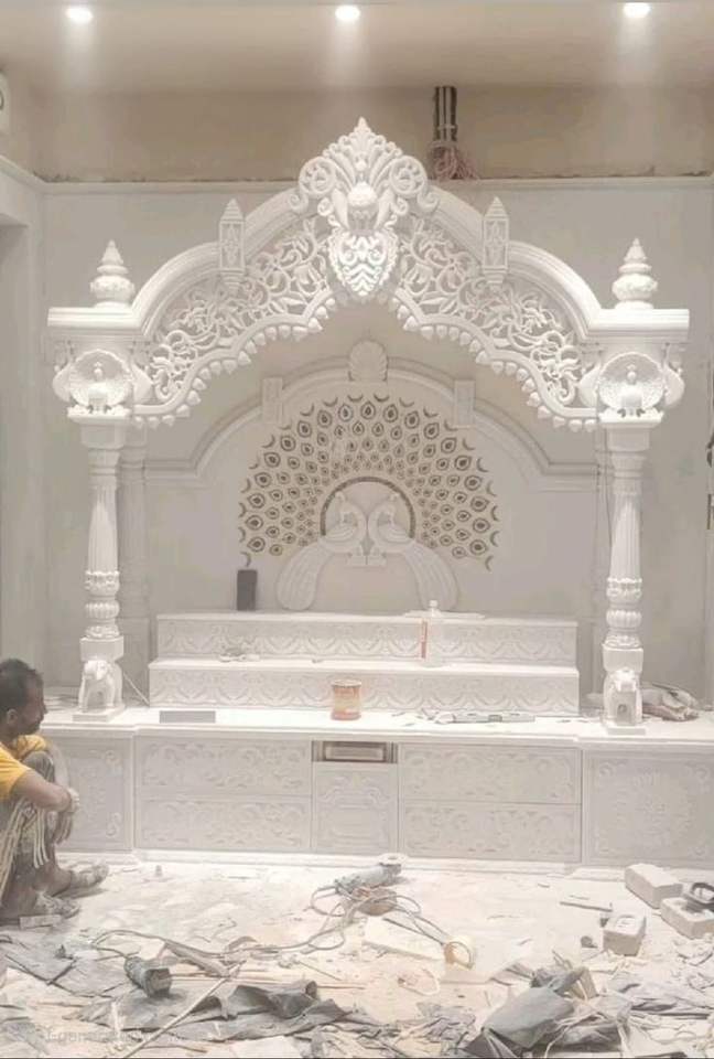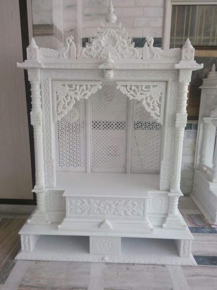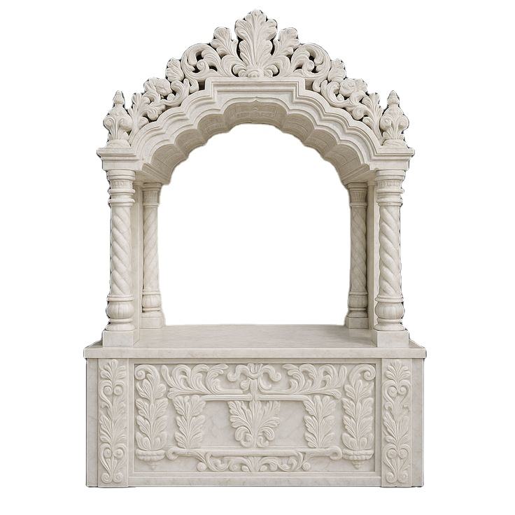 Jarrón de suelo móvil con incrustaciones de mármol blanco y patrón geométrico moderno para el templo Mandir y la Pooja en el hogar